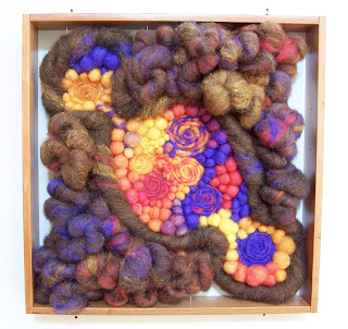 Wool fibers, handfelted using needle felting technique